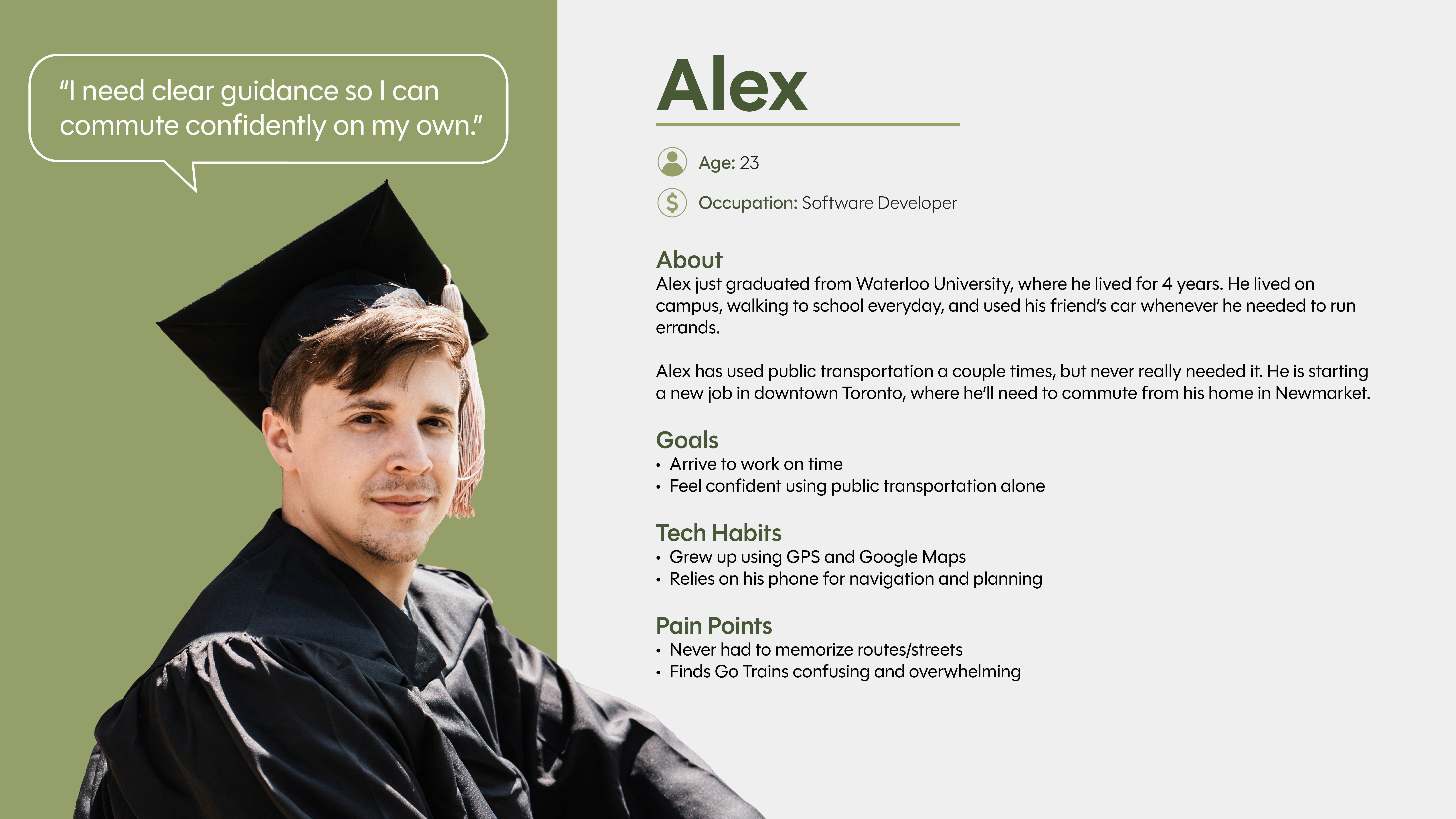 We conducted interviews and observations with GO Transit riders aged 18–28 who regularly commute using the system.